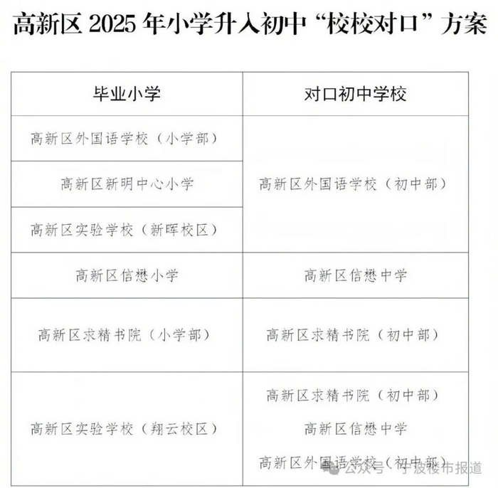 今年高新区初中“校校对口”如下: