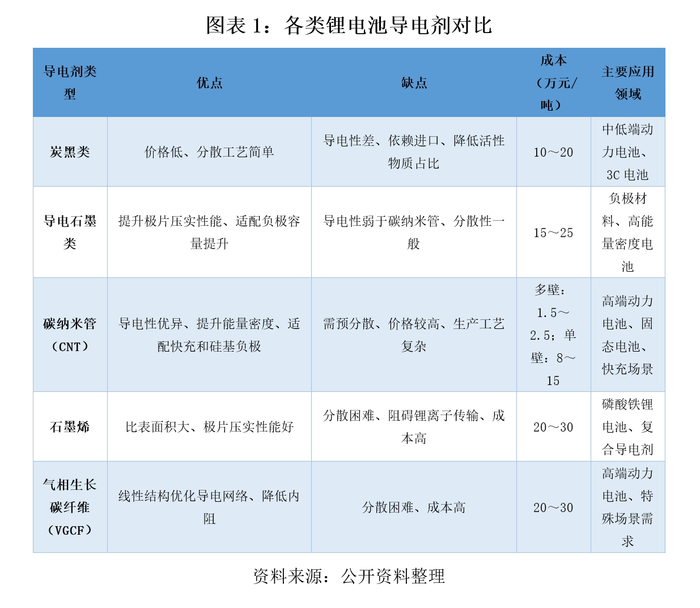 随着动力市场对锂离子电池能量密度、循环寿命、快充性能等方面的性能要求提高,新型导电剂凭借更好的导电性能开始逐步渗透。