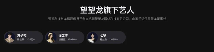 不同于签约合作的其他明星主播,黄子韬和遥望科技的捆绑程度更深。2021年7月,遥望科技与龙韬娱乐共同成立了杭州望望龙网络科技有限公司,股东名单显示,遥望科技旗下的杭州遥望网络科技有限公司(下称“遥望网络”)持股46%。