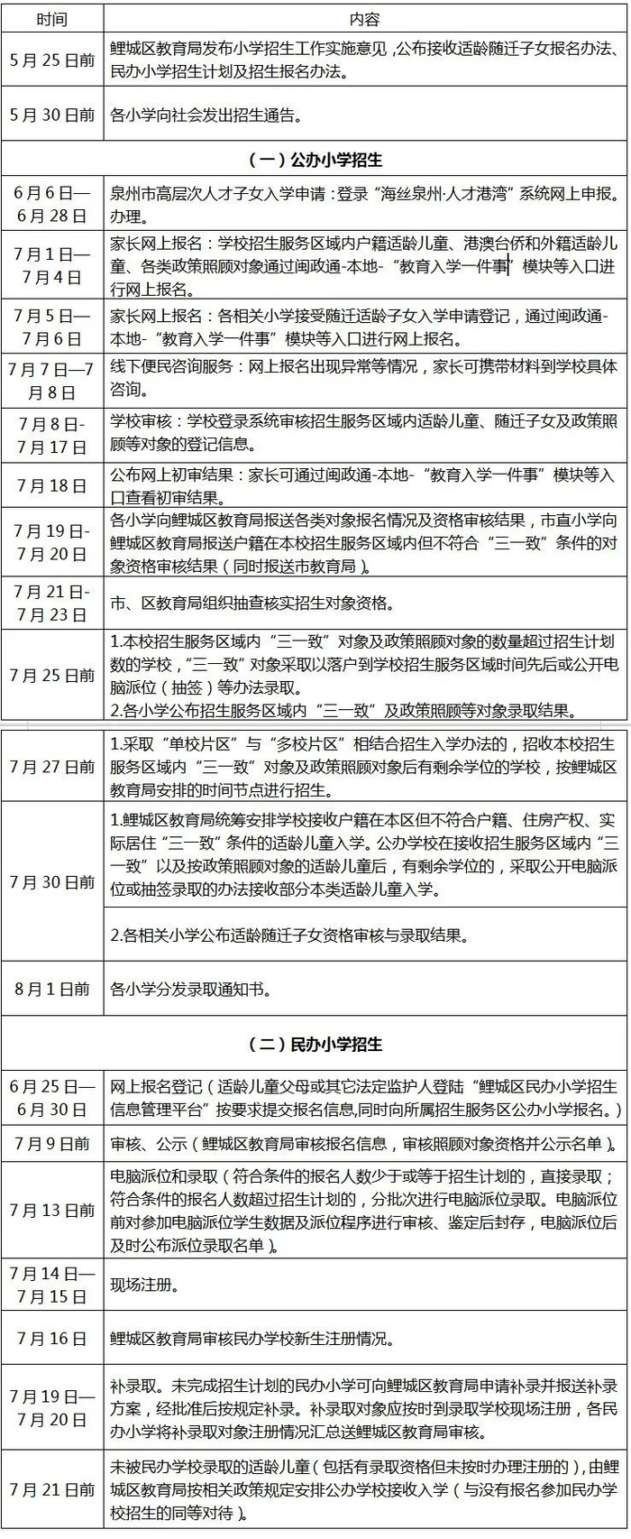 洛江区2025年秋季小学招生日程安排表