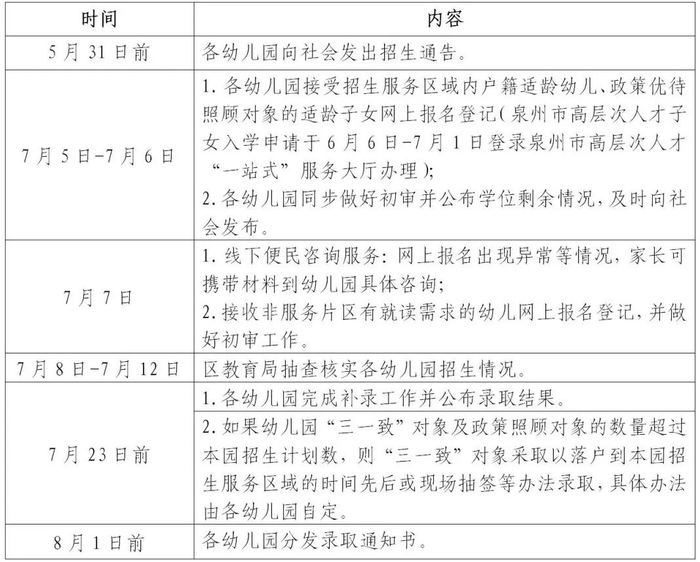 洛江区2025年秋季幼儿园招生日程安排表