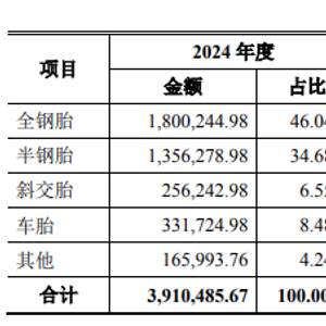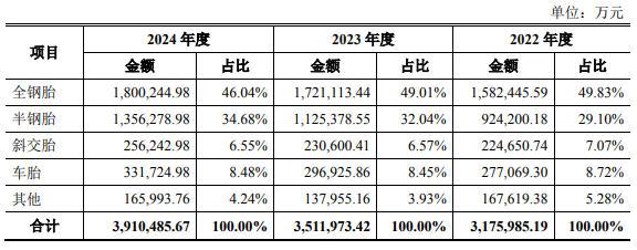 报告期内,公司主营业务收入主要为全钢胎、半钢胎、斜交胎以及车胎产品的销售收入,具体构成情况如下: