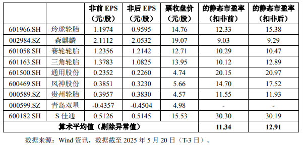 估值方面从同类可比公司来看上面9家可比公司中有3家可比公司2024年的扣非静态市盈率低于中策橡胶,其余6家则高于中策橡胶。
