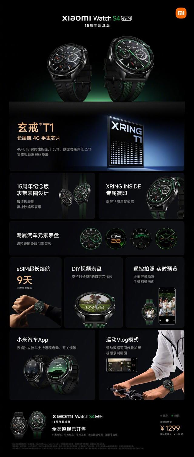 设计上,Watch S4 eSIM纪念版采用1.43英寸466×466 OLED圆屏,峰值亮度2200nit,支持60Hz刷新率和双频GPS,表圈刻有XRING徽印,提供锻造碳表圈和氟橡胶编织表带两种材质选择。功能方面,支持全天候心率监测、女性健康追踪、滑雪模式2.0,并内置小米汽车APP,可远程控制车辆开关锁、空调通风等。