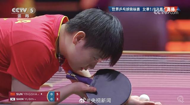 2025年多哈世乒赛女单1/8决赛,孙颖莎4-2战胜韩国选手申裕斌,晋级8强。
