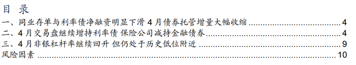 本文源自报告:《交易盘增持利率债保险减持金融债 非银杠杆继续抬升但仍处低位——2025年4月债券托管数据点评》