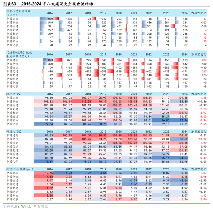 现金表现不及预期。24年产业链体现出较大的经营现金压力,若未来化债效果低于预期,企业回款或进一步承压,而民企垫资意愿继续降低,将导致央国企现金流进一步恶化,杠杆压力加大。