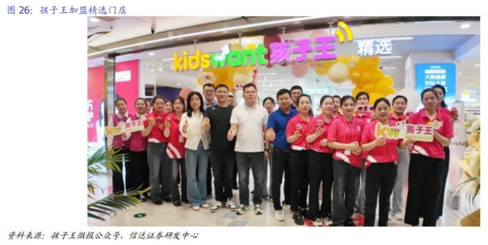 孩子王开放加盟模式,瞄准母婴下沉市场头部零售品牌渠道优势。孩子王加盟精选店成为大品牌下沉的首选阵地,通过短链直采、高效对接及电子价签等方式保证市场秩序,提效大品牌在下沉市场的表现。同时,通过整店输出模式控货价,拉动下层市场消费。公司希望通过加盟方式及精选店形态构建产业新生态,展现出独特定位与优势,相较于直营店,孩子王通过“品牌授权+数字化能力”整店模型输出吸引加盟,后续有望持续推进加盟拓展,助力下沉市场亲子家庭多元化需求的满足。