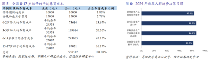 消费意愿受经济环境影响,育儿理念转变推动行业发展。经济下行周期,生育被视为家庭未来经济潜力的增长点,因而消费者在儿童保育及教育层面的花费更多。随着95后、00后为代表的Z世代成为母婴市场新人群,母婴市场消费需求呈现显著上升态势,传统的粗放型家庭育儿理念逐步向科学育儿、精细育儿以及精致育儿迈进,据易观数据,超80%的母婴人群会在做消费决策前全方位进行相关资料的研究,因此推动母婴童行业更多的机遇与挑战。