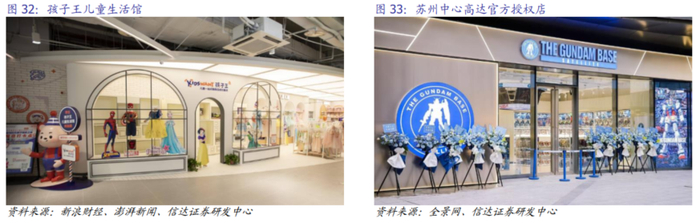 零售渠道层面亦有针对大童市场的门店升级和业务拓展。如孩子王通过开设“全龄段儿童生活馆”的模式填补中大童需求服务的空白,在超40家改造门店中新增健康零食馆、户外出行馆等九大主题场景,馆内商品品类及空间也进行重构,重点布局儿童服装、运动装备等,同时叠加儿童彩妆、口腔护理等高增长品类,充分满足全龄段儿童或产生的各类需求,强化“商品+体验”价值,重构公司原有母婴生态的人货场逻辑。而爱婴室则是与IP经济深度融合,努力开拓第二增长曲线。2024年12月20日,经万代南宫梦授权,由爱婴室旗下公司运营的高达官方授权店在苏州中心开业,或为公司借助万代IP通过高达模型等周边商品吸引大童家庭,突破其在母婴市场的增长瓶颈。此外,爱婴室还可通过万代通贩店授权拓展全渠道IP零售,万代IP覆盖的Z世代父母本就与爱婴室目标客群高度重合,本次合作也是爱婴室计划通过重构人货场逻辑,扩大目标客户群,缓解母婴主业增长压力,同时又可拓展新兴消费市场的战略决策。