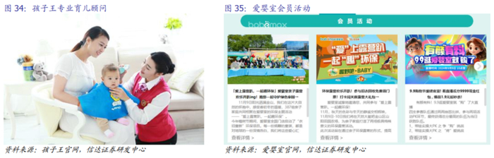 会员体系整合进一步打通全域,专业指导咨询提升消费情绪。当前头部母婴童线下渠道龙头如孩子王、爱婴室等,都已具备完善的会员体系,除线下实体门店消费外,同步开通了各自的自家线上商城,并与同城O2O合作,匹配送货上门及快递到家服务。孩子王通过建立统一的会员数据库,整合线上线下会员信息,实现了会员数据的全面管理。其黑金PLUS会员体系提供了丰富的权益,包括返现、专属商品、育儿顾问等,吸引了大量消费者成为付费会员。在全域打通方面,孩子王通过线上线下融合的营销活动、统一的商品与库存管理,为会员提供了无缝的购物体验。此外孩子王还设有专门的线上线下同步育儿顾问,目前孩子王在全国范围内培养了超8000位持有国家育婴师资质的专业育儿顾问,通过线上线下的育儿知识服务和消费情绪关怀,增强了会员的粘性和忠诚度。截至2024年底孩子王的会员总数超9400万人,黑金会员单客贡献产值是非黑金会员的12倍以上。而爱婴室以区域深耕为基础,通过优化会员分层和精准营销,提升了会员的复购率和消费额。在会员权益方面,爱婴室不断创新,推出积分兑换、寄存及厂家直送到家等服务,满足会员的多样化需求。在全域打通方面,爱婴室加强了线上线下渠道的融合,通过O2O即时零售业务的发展,实现了线上线下会员权益的统一和服务体验的一致。此外,爱婴室通过与供应商的深度合作,优化供应链管理,为会员提供优质、低价的商品。