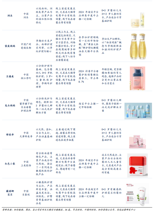 品牌分化竞争加剧,国货品牌崛起成为主力。婴童护肤市场的快速增长吸引了众多参与者,竞争日益激烈。头部品牌凭借品牌知名度、产品质量和营销策略的优势,不断扩大市场份额;而中小品牌则通过差异化竞争或深耕细分市场,寻求突破。头部品牌集中度存在进一步提升空间,品牌分化趋势明显,促使更多企业进入市场。近年来,国货品牌在婴童护肤领域表现突出,凭借对本土市场的深入了解和灵活的市场策略,逐渐赢得了消费者的信任和青睐。
