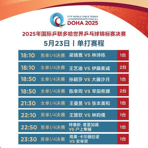 国乒加油!女单将上演4场“中日对决” 多哈世乒赛第七日赛程