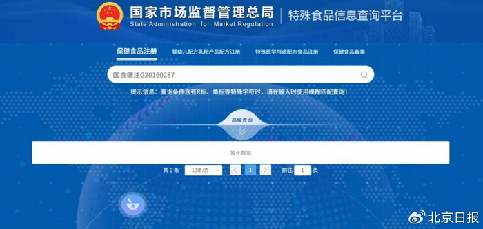 通过官方的查询平台,记者发现了这起普通食品冒充保健食品的情况,但平台的查询功能仍有待完善。原本想的是复查一下之前那几个直播间的“小蓝帽”,但记者将对应的批准文号输进查询系统,却一件产品也查不到。