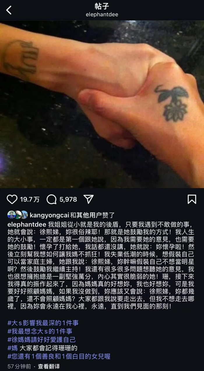 5月9日,在大S去世即将百日之际,小S首次更新社交媒体悼念姐姐。