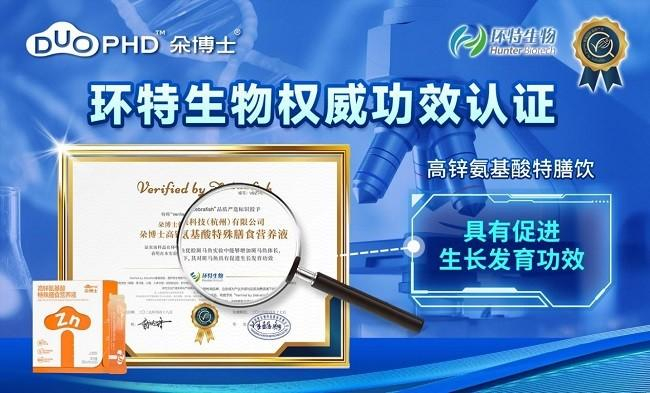 环特生物权威认证,朵博士高锌氨基酸营养液获得科学有效证明