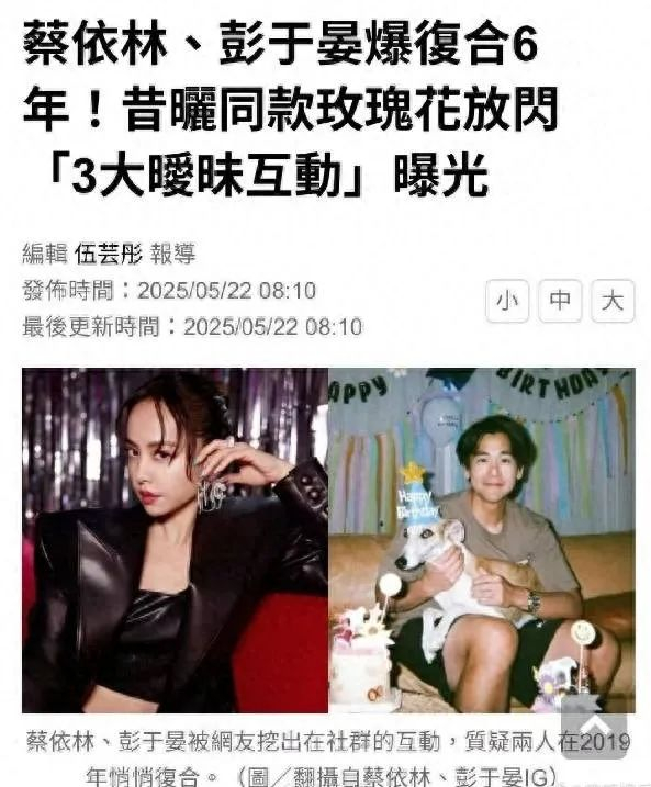 日前,有台媒报道蔡依林与彭于晏已复合六年,并在社交平台上找出多张两人的同款照片,根据台媒报道,两人是在2019年正式复合的。