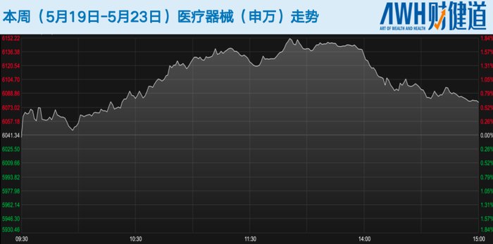 具体到板块。本周化学制药上涨3.58%、医疗器械上涨0.48%、中药上涨0.19%、医药商业上涨1.15%。