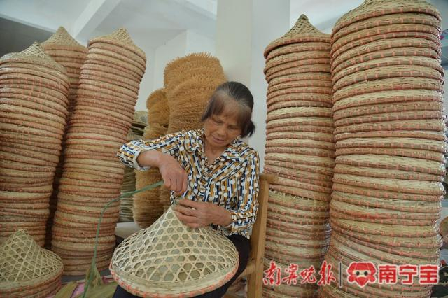 20世纪90年代,在外打拼的韦焕开回到家乡创办了宾阳县太守竹器厂,发展多年后成立宾阳县恒生工艺品有限责任公司。韦焕开说:“我们根据市场需要设计制作了许多品类,比如花瓶、化妆品收纳盒等,好看又实用,获得国内外市场好评。”在工作车间前的空地,晾晒着数十个竹编斗笠。这些斗笠订单来自浙江,为即将到来的端午节划龙舟活动做准备。“客户要1000多顶斗笠,我们要在端午节前做好,把货发到客户手中。”韦焕开说。