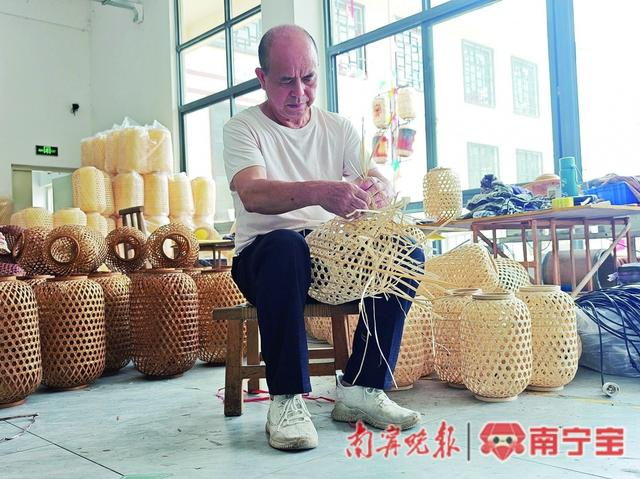 韦焕开介绍,2023年思陇镇竹编非遗传承发展基地(以下简称基地)建成投入使用,采用“合作社+公司”的模式,由六岑村、六章村、太守社区、兰田村合作社与宾阳县恒生工艺品有限责任公司合作经营。基地的投入使用,推动了公司的产业升级,今后将建成“产、学、研”一体的竹编非遗传承基地。
