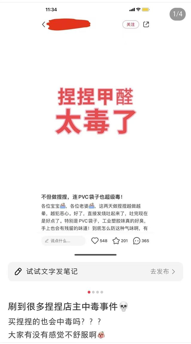 从去年就已经出现了多位捏捏博主、商家向粉丝和消费者报告自己患病从此退圈的消息,有极少数人的病情比较严重,更多捏捏店主称自己中毒了,不敢再继续制作了,“这两天做订单总觉得嗓子干痛,今天起床发现咳血了,搜了一下发现不少店主出现嗓子痛、起痘痘、免疫力下降的情况。”“捏捏中毒进医院了,告诫各位千万不要在卧室做捏捏。”“闭店了,一做捏捏眼睛就痛,身上长了一些痒痒的小红点,可能甲醛的确有影响。”“抱歉通知永久闭店了,二月份起我开始胸闷咳嗽不断,老公也有这个症状,还以为是我感冒传染他了,三月体检发现血常规异常,为了身体考虑决定不再做捏捏了。”