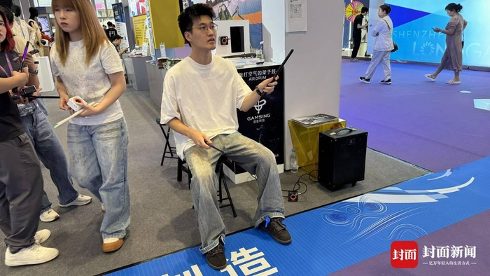 只需在空气中挥舞鼓棒,竟能弹奏出动感十足的经典流行歌曲《改变自己》?5月23日,在第二十一届中国(深圳)国际文化产业博览交易会上,一款名为“感音空气架子鼓”的智能架子鼓吸引了无数观众驻足欣赏和体验,成为本届文博会上的“人气王”之一。