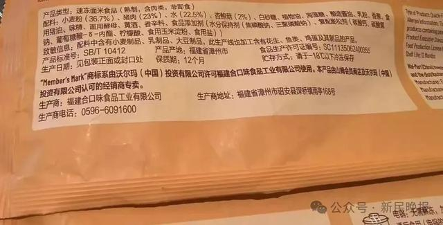 该产品包装显示,“馅料饱满,纯手工包制”,此外,产品说明提到,“本产品由山姆会员店及沃尔玛(中国)投资有限公司认可的经销商专卖”。