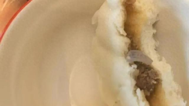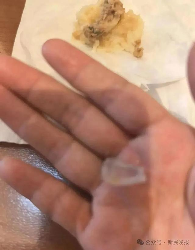 老公吃山姆会员店买的鲜肉包子时,吃到了疑似玻璃的透明异物。