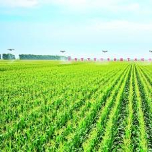 在吉林省梨树县百万亩绿色食品玉米标准化基地核心区,工作人员在开展植保无人机飞防作业。吉林日报记者赵博摄