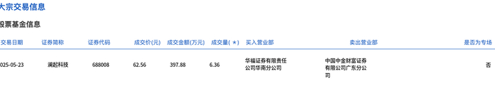 澜起科技今日大宗交易折价成交6.36万股,成交额397.88万元