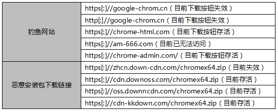 攻击者搭建了多个钓鱼网站,下载时又跳转至多个下载链接,具体如下表所示。
