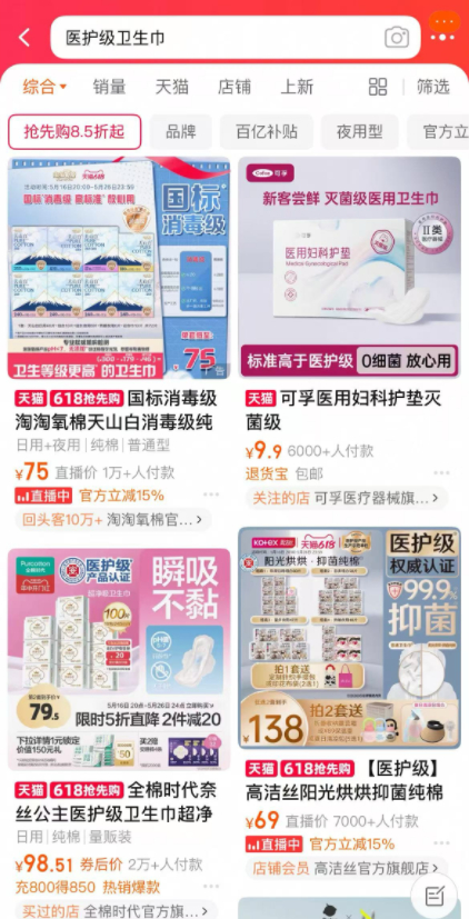 在一众新概念中,“医护级卫生巾”成为最大的“黑马”。