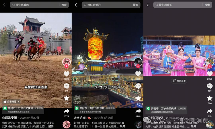 除了专为五一小长假定制的节目单,考虑到小长假跨区旅游消费者较多,他们对当地并不熟悉,在吃喝玩乐方面都存在更深度的需求:“住哪个酒店更方便”“开封有什么好吃的?”“周边还有什么能玩的?”这样评论也屡见不鲜。