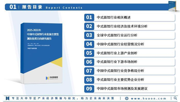 华经产业研究院为助力企业、科研、投资机构等单位了解中式面馆行业发展态势及未来趋势,特重磅推出《2025-2031年中国中式面馆行业发展全景监测及投资方向研究报告》,本报告由华经产业研究院研究团队对中式面馆行业进行多年跟踪研究,使用桌面研究与定量调查、定性分析相结合的方式,全面解读中式面馆行业市场,深度挖掘行业潜在商机;科学运用研究模型,多维度对行业投资风险进行评估后精心研究编制。
