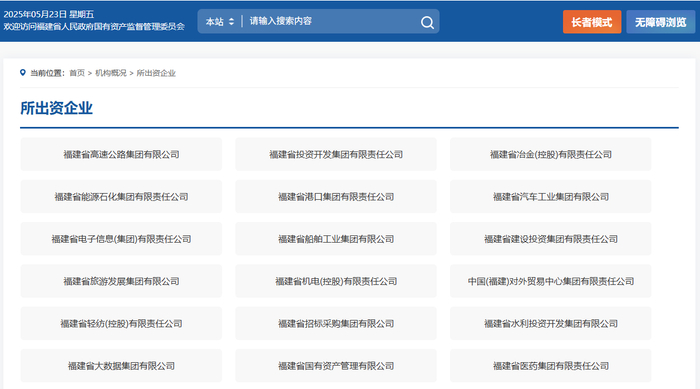 值得一提的是,福建省国资委官网显示,其出资企业共有18家,包括福建省高速公路集团有限公司、福建省投资开发集团有限责任公司等,此次参与组建福建轻纺、福建冶金也位列其中。