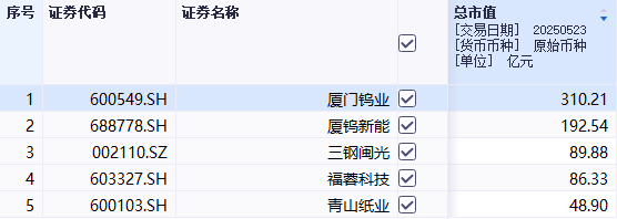 以上5家公司均表示,上述事项对公司经营活动不构成重要影响,公司控股股东持股比例及最终实际控制人亦不会因此发生实质性变化。同花顺iFinD显示,截至5月23日收盘,厦门钨业等4家公司的总市值合计约为727.86亿元。