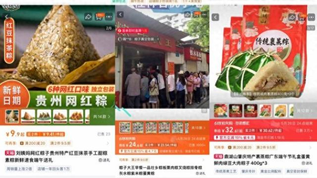 与往年不同,除了像五芳斋、真真老老、诸老大这些老字号粽子店,今年各地特色粽子店纷纷在淘宝开店,伴随特种兵旅游、网红地方美食的火爆,也带动了这些“粽子小店”的线上生意。