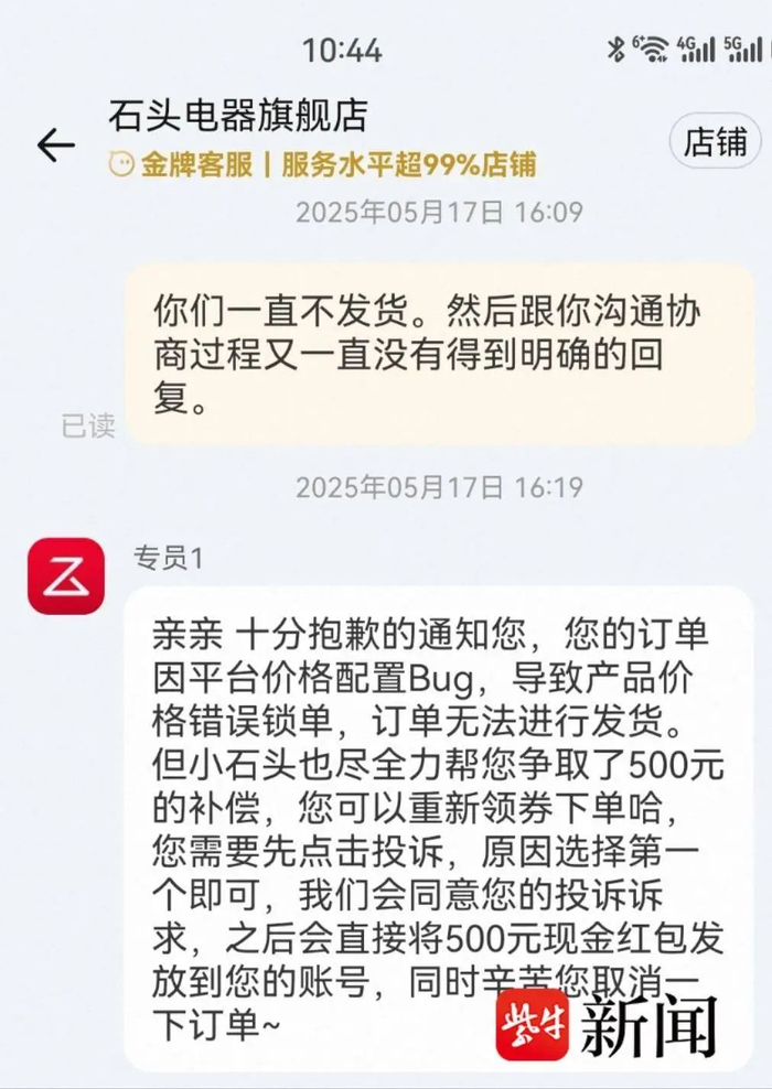 该事件究竟是商家标错价格,还是蓄意低价引流又或是系统bug导致?记者致电石头科技客服询问此事,多位客服都回避记者问题,只强调此事需和购买的店铺协商。