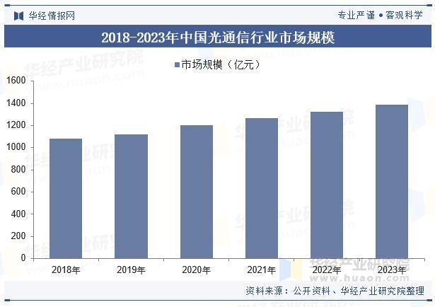 光通信行业是5G网络建设和数据中心搭建的基础,在下游需求扩张的推动下,其行业将保持稳步增长态势。2023年我国光通信市场规模达到1390亿元,2018年至2023年复合增长率为5.02%。