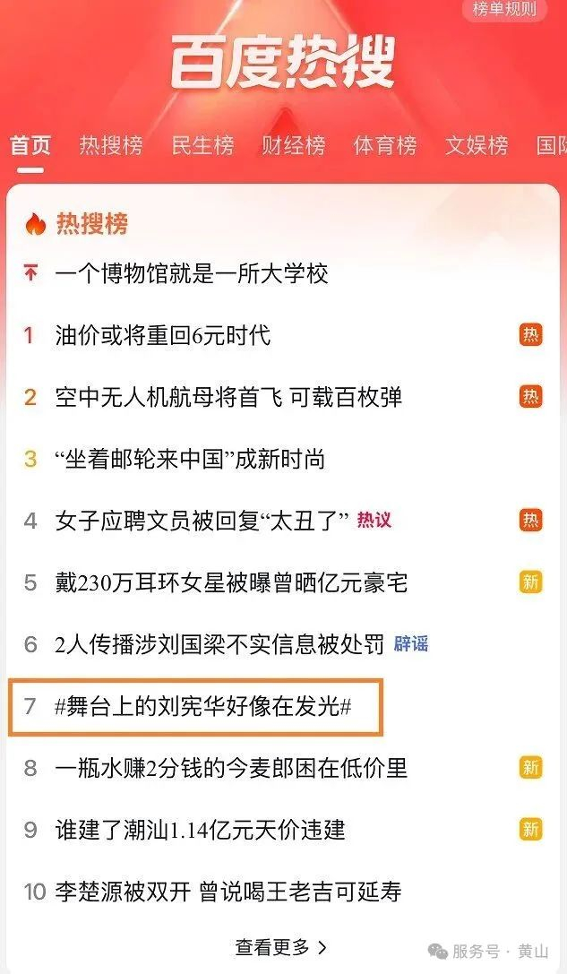 首日演出中,颜人中温柔开嗓,深情演唱《夏夜最后的烟火》等曲目,其清澈嗓音点燃全场浪漫氛围;希林娜依·高则以空灵声线征服观众,并全场喊话黄山烧饼,瞬间将现场氛围推向高潮;说唱先锋王以太以《别怕变老》等作品点燃全场激情,海龟先生、对角巷、乐团MOCKMOON幻月等乐队轮番登场,带来风格多元的音乐盛宴。压轴登场的全能音乐人刘宪华,以《TRAP》引爆尖叫,成为当日最大亮点。#谁懂刘宪华唱trap的含金量#也迅速登录百度等平台热榜。