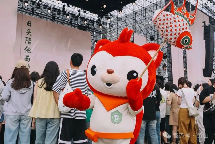 和徽州鱼灯一样备受欢迎的,还有黄山卡通IP——海底小纵队特别外派员“花仔”。这一次,花仔走进音乐节人群,通过近距离互动为现场增添了很多乐趣,收获了满满粉丝,并且为现场观众送上精美礼物。