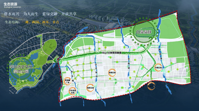 生态规划堪称“东强”战略的典范之作。其中最具代表性的是7.5公里长的华山-白泉景观廊道。这条宽120米、占地90公顷的生态廊道,串联起白泉泉群和华山历史文化公园,成为济南东城的“生态脊梁”。