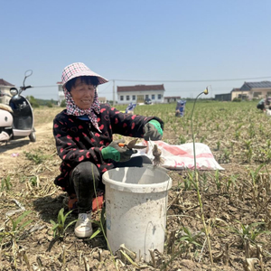 村里的飞宇家庭农场负责人施建兵承包了200余亩蒜田,种蒜已有6年。“今年蒜苗价格稳中有升,每亩营收五六千元不成问题。”他笑着说。家庭农场不仅带动了自家增收,更吸纳了本村及周边村民务工,日工资150至180元。“我们村就种大蒜,在家门口干活,既能顾家又能挣钱。”村民王大妈在田间边剪蒜柄边说道。