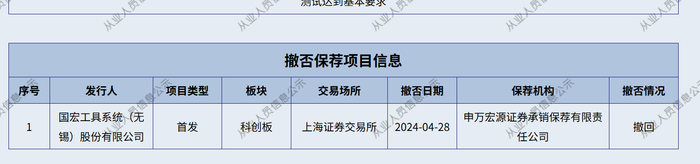 申万宏源证券承销保荐保代吴杏辉事涉国宏工具IPO项目。