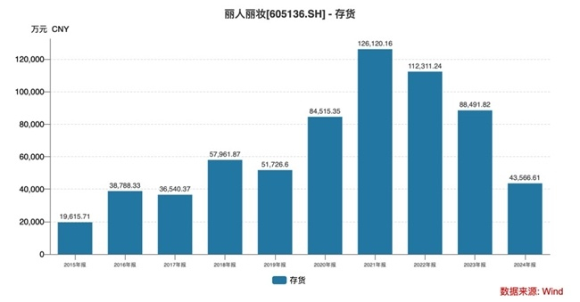 无论是绝对金额,还是相对金额,丽人丽妆的库存压力都很大。