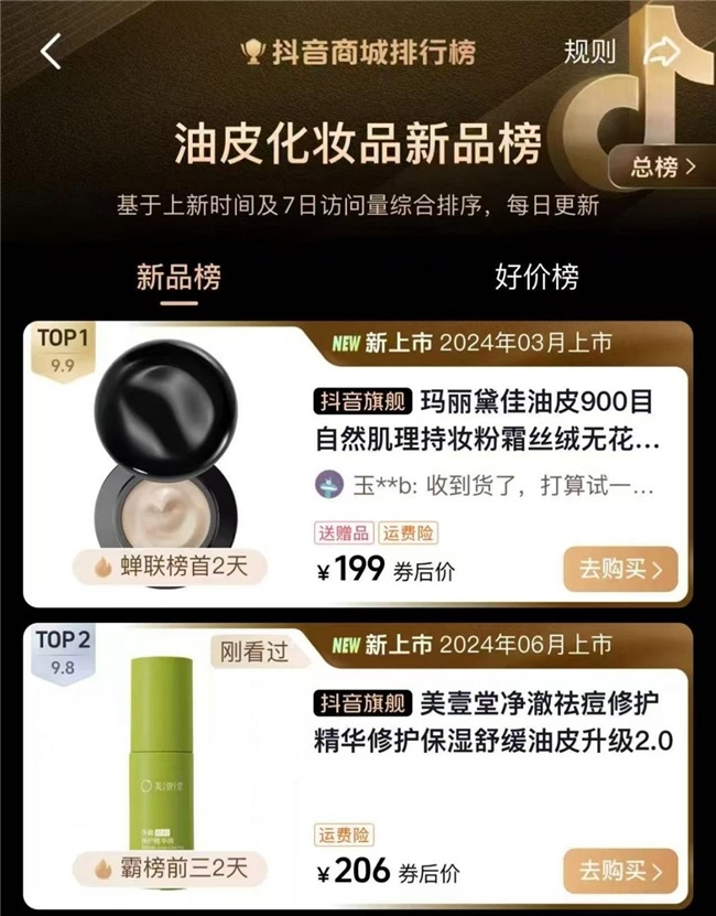 她做的祛痘精华一上线,就做到了抖音排行榜第二,随后又推出了美壹堂亮白饮等等,都取得了不错的效果。