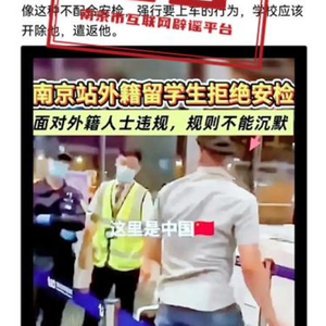 近日,一则“外籍留学生强闯南京火车站安检”的信息在网络传播,称南京火车站一外籍留学生强闯安检,被阻止后怒扔安检提醒牌。