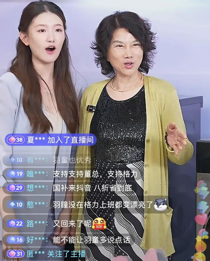 5月23日,董明珠与孟羽童同框直播,这是孟羽童离开格力电器后两人首次同框破冰。