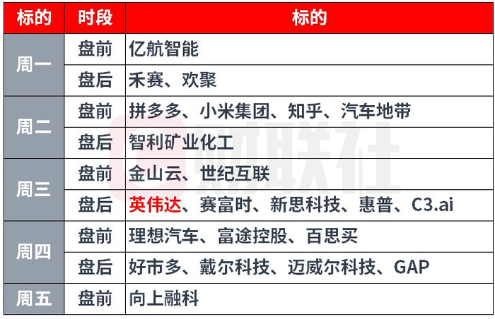此外,赛富时、惠普、戴尔等AI产业链重要参与者也将发布财报。中概股投资者也将迎来拼多多、小米的财报,同时禾赛、亿航智能、金山云等科技题材概念股也将披露最新业绩。