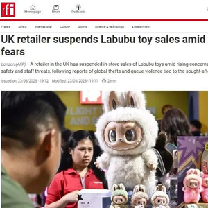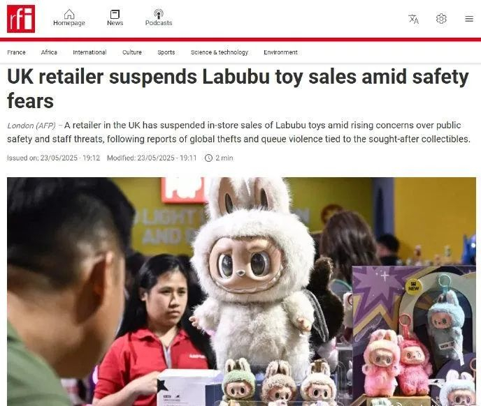 中国潮玩品牌泡泡玛特旗下的Labubu角色在全球走红后,在英国引发抢购热潮,当地甚至出现顾客为此争吵打斗的混乱场面。泡泡玛特随后以防范安全隐患为由,从英国所有门店下架这款产品。